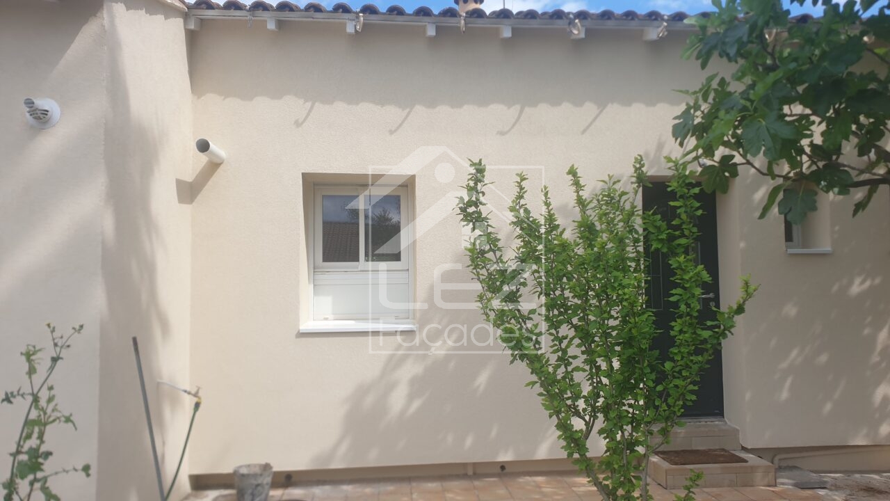 - Finition par un enduit décoratif à base de résine, offrant une protection durable et une esthétique contemporaine pour cette maison du Crès (34920).